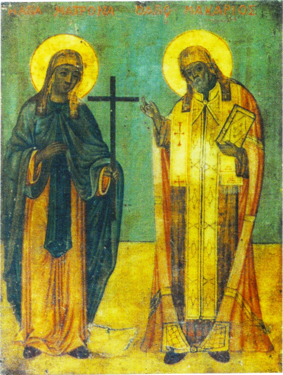 [9] Ο Άγιος Μακάριος ο Νοταράς και η Αγία Ματρώνα η Χιοπολίτιδα. Φορητή εικόνα στην Ιερά Μονή Αγίας Ευπραξίας Ύδρας.